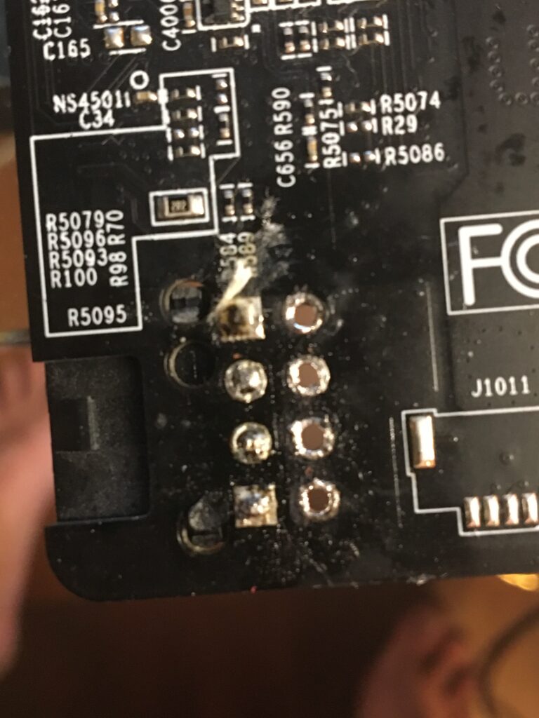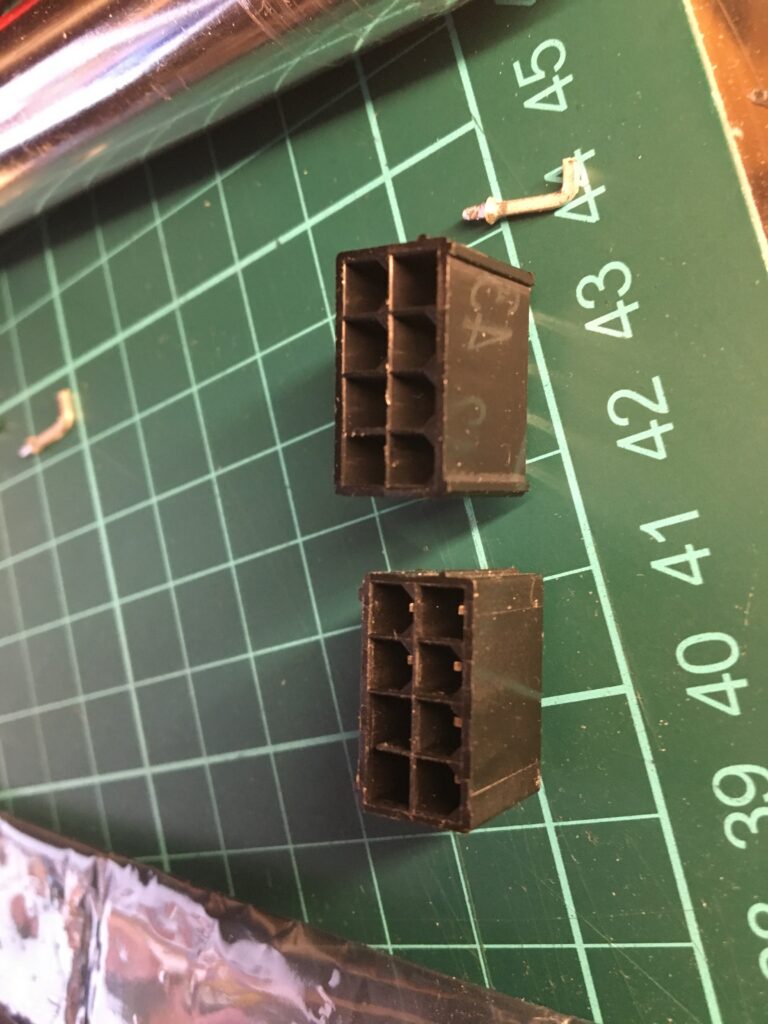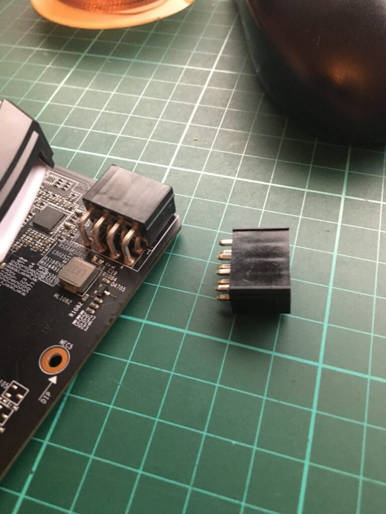 Die Steckerpins einzeln auf der Lüfterseite abgezwickt, nacheinander vorsichtig heraus gelötet (sie klemmten ein wenig in der Durchbohrung). Danach die Lötstellen gereinigt und den neuen Stecker aufgesetzt.