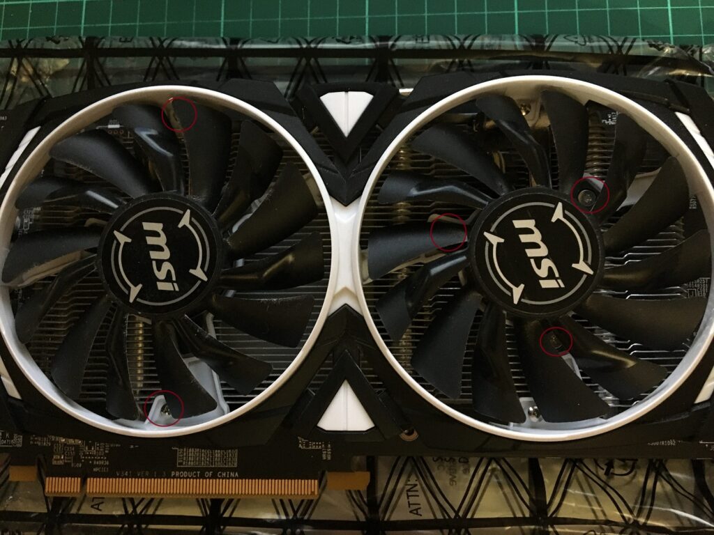 Lager war(en) defekt. Der Lüfter schliff und wackelte vor sicvh hin. Blieb manchmal auch hängen. MSI Support war hier keine große Hilfe. Ein Amazon Hänlder hatte die falsche Größe geliefert. Zum Glück fand ich den richtigen Lüfter bei Aliexpress.