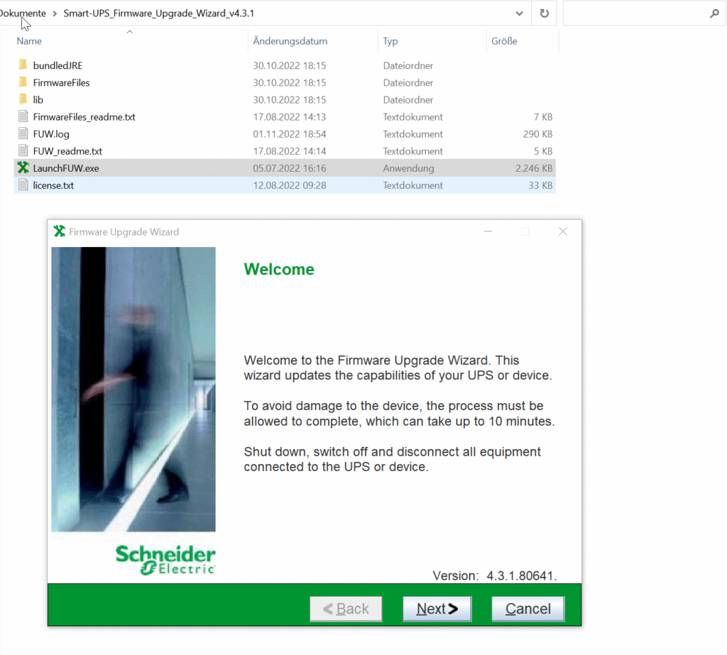 Es war etwas mühsam. Zu der SMT750I USV wurden in Foren verschiedene IDs genannt. Im Display selbst wurde nichts angezeigt weil wohl die vorhandene FW so alt war, daß dies nicht angezeigt wurde.